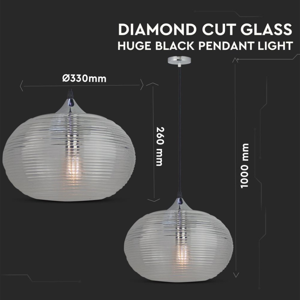 Recensioni V-TAC Lampadario LED a Sfera in Vetro Ondulato e Metallo con Portalampada E27 (Max 60W) Colore Nero Trasparente