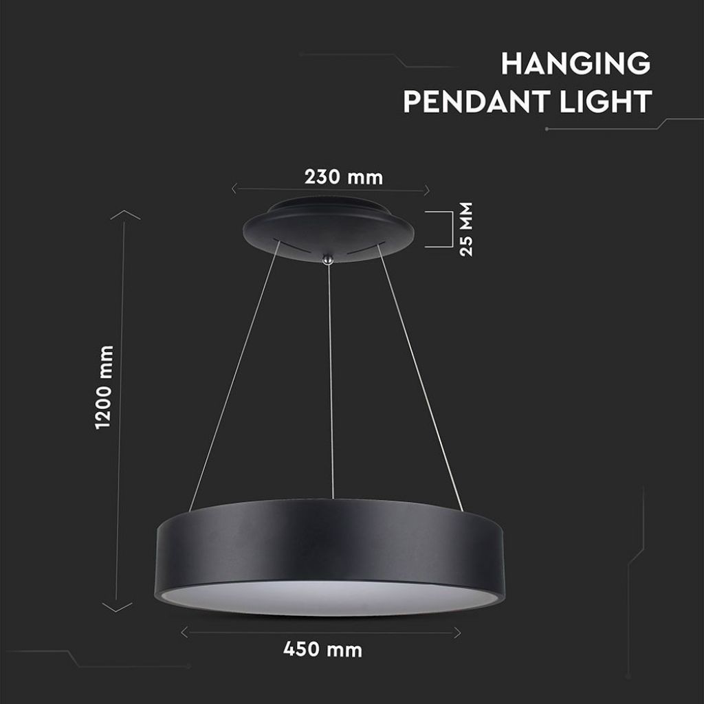 Recensioni V-TAC Lampadario LED a Sospensione Circolare 25W in Metallo Colore Nero d: 45cm h: 120cm 3000K