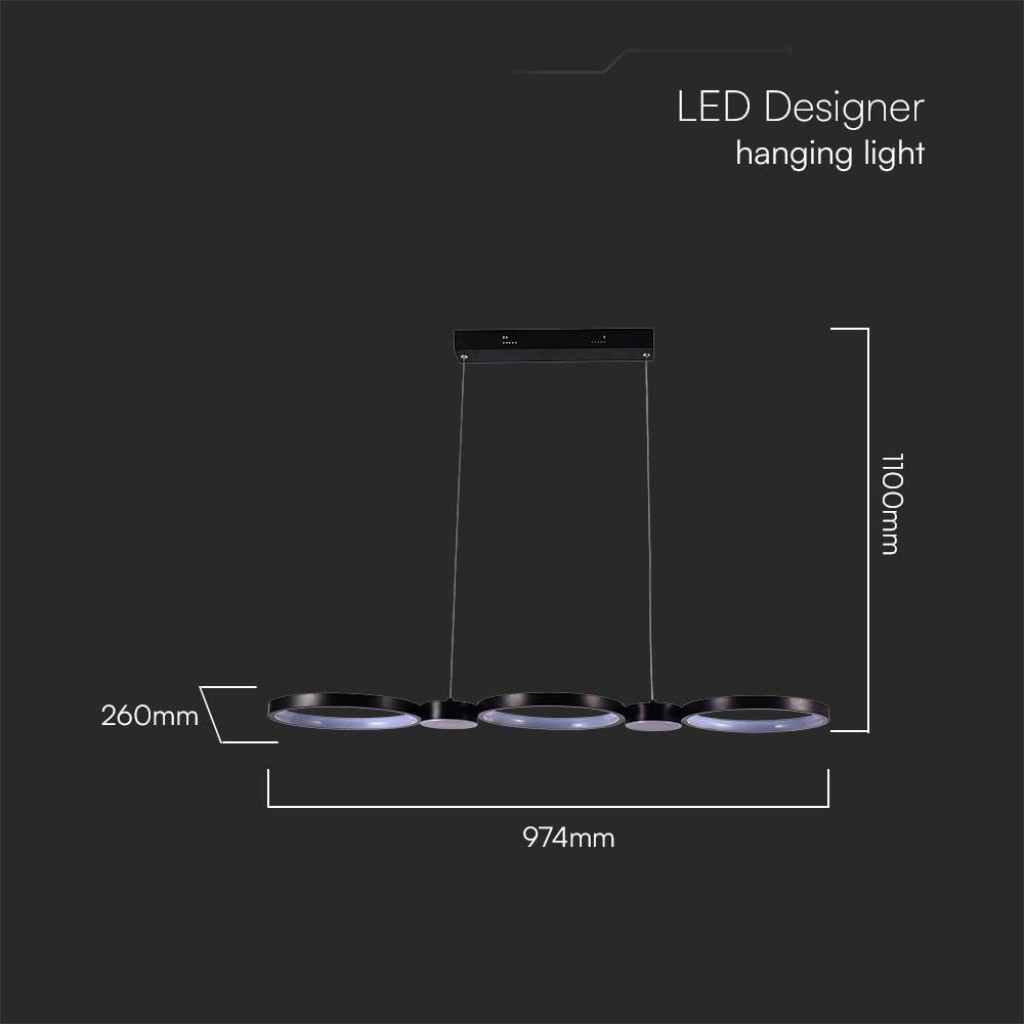 Recensioni V-TAC Lampadario LED a Sospensione con 3 Cerchi 38W in Metallo Colore Nero 97.4*26*110cm 3000K