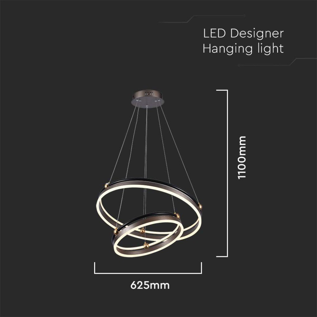 Recensioni V-TAC Lampadario LED a Sospensione con 2 Cerchi 50W in Metallo Colore Caffè d: 62.5cm h: 110cm 3000K