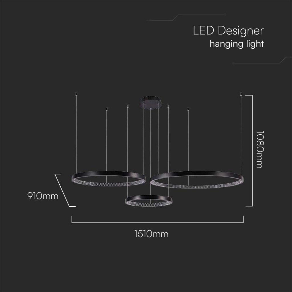 Recensioni V-TAC Lampadario LED a Sospensione con 3 Cerchi 57W in Metallo Colore Nero 151*91*108cm 3000K