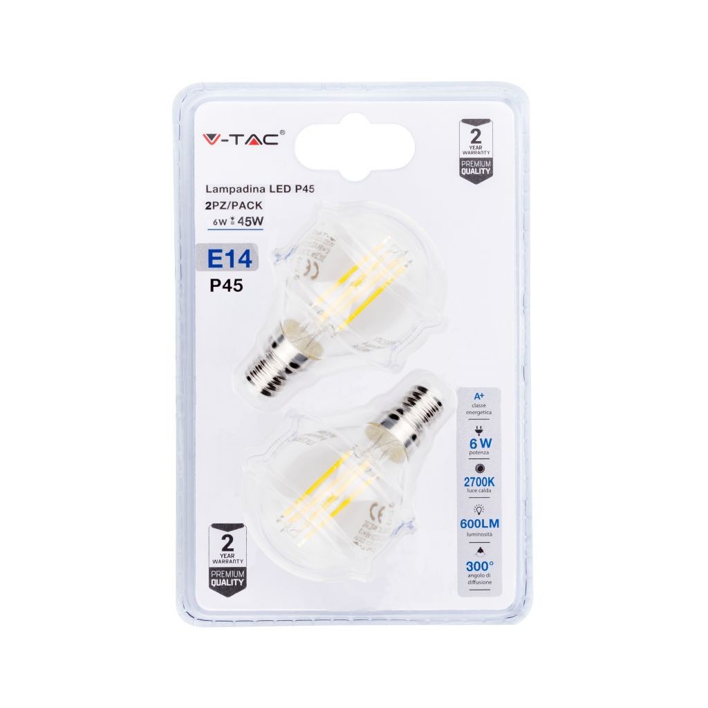 Recensioni V-TAC Lampadina LED E14 6W P45 Filamento 2700K (Blister 2 Pezzi)