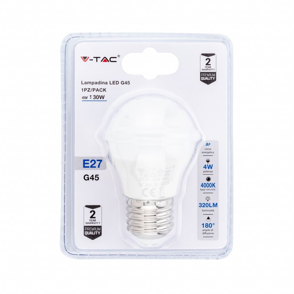 Recensioni V-TAC Lampadina LED E27 4W G45 4000K (Blister 1 Pezzo)