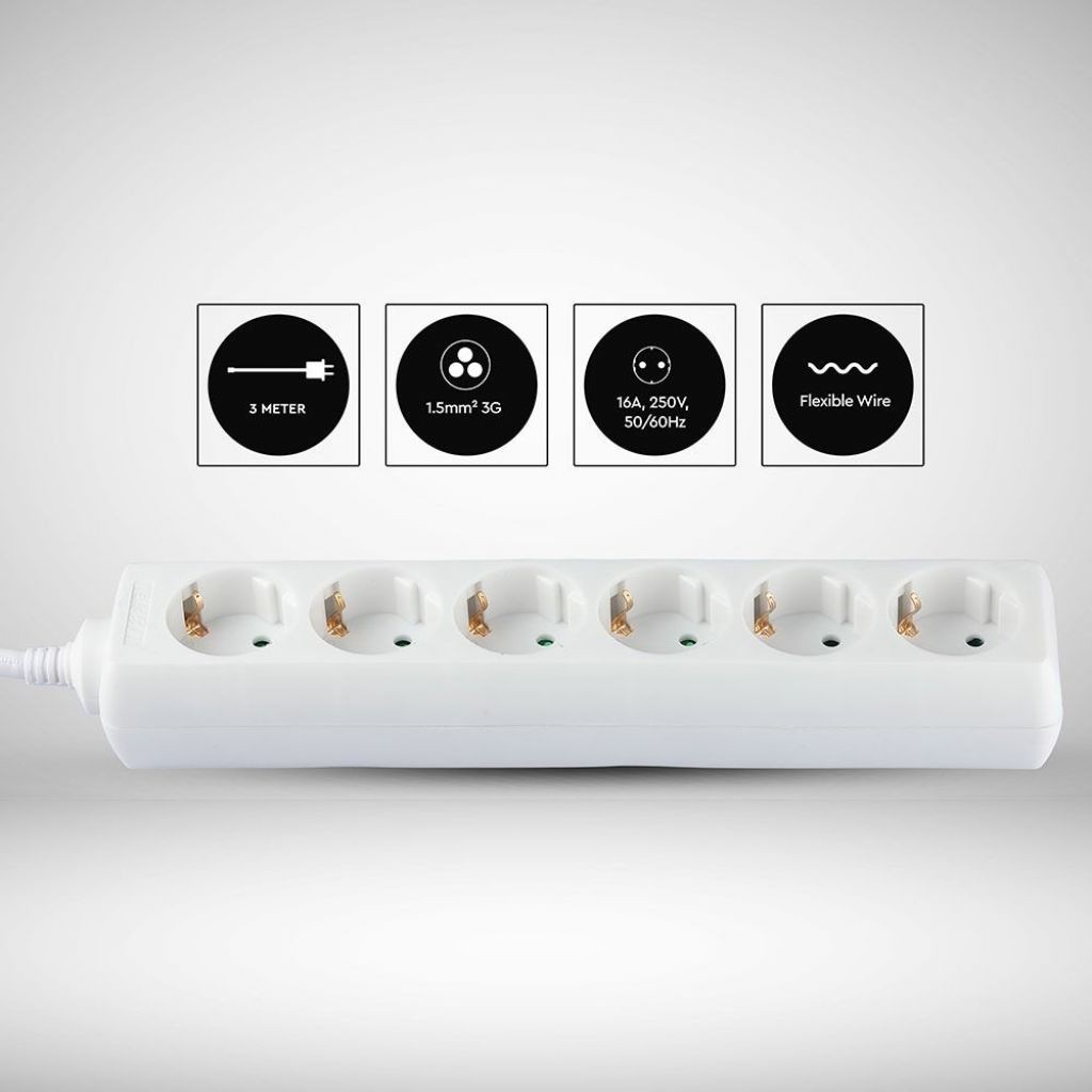 Recensioni V-TAC Multipresa con Cavo 3m 6 Prese 10A 2P + Schuko e Spina Schuko Colore Bianco