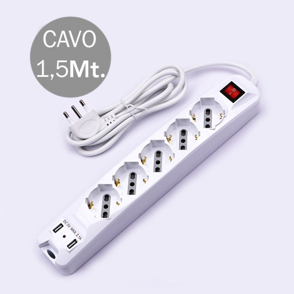Recensioni V-TAC Multipresa con Cavo 1,5m 5 Prese 10/16A Bipasso + Schuko e 2 USB Interruttore Luminoso Spina 16A 2P+T Colore Bianco