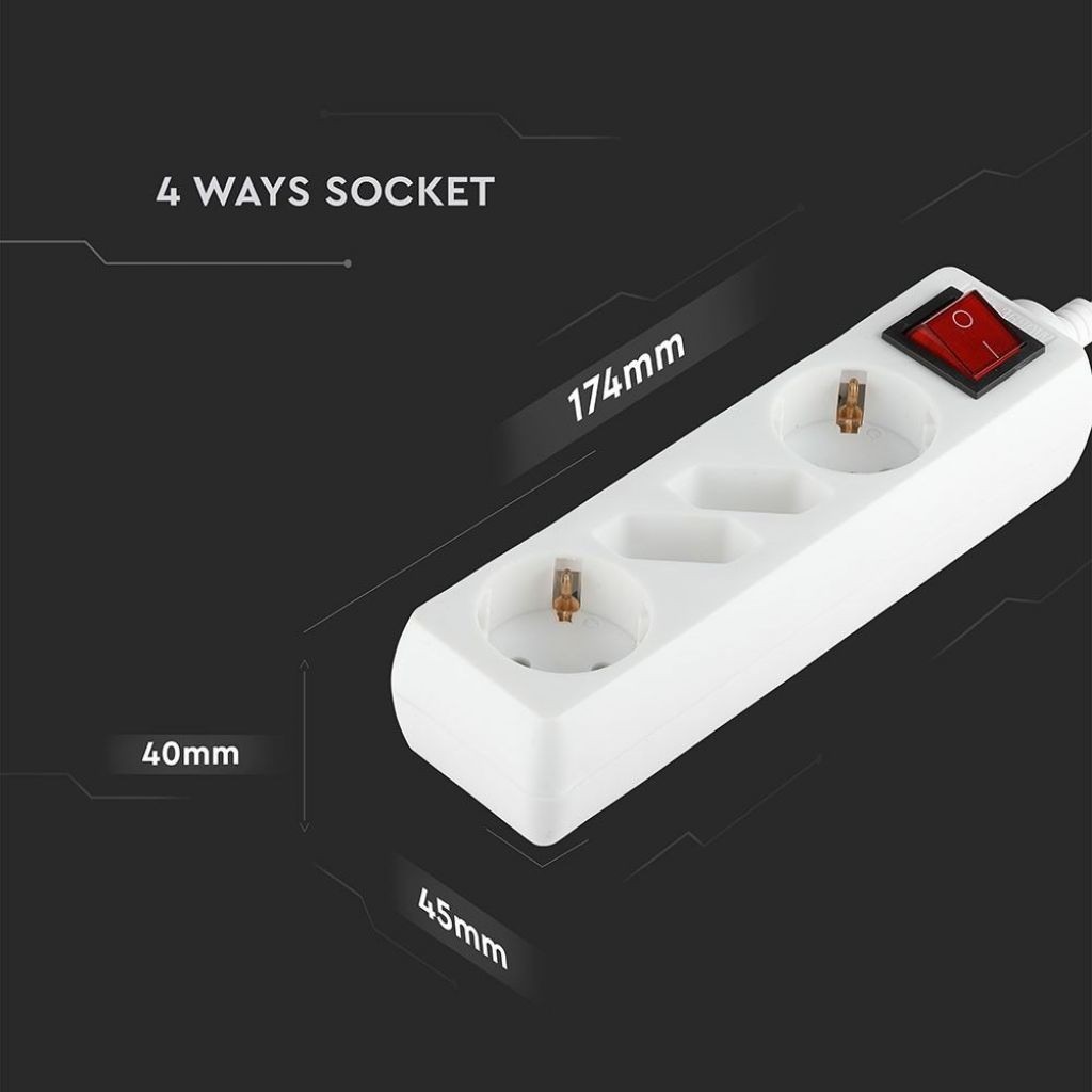 Recensioni V-TAC Multipresa con Cavo 1,5m 4 Prese 2 10A 2P + Schuko 2 10A e Interruttore Luminoso Spina Schuko Colore Bianco