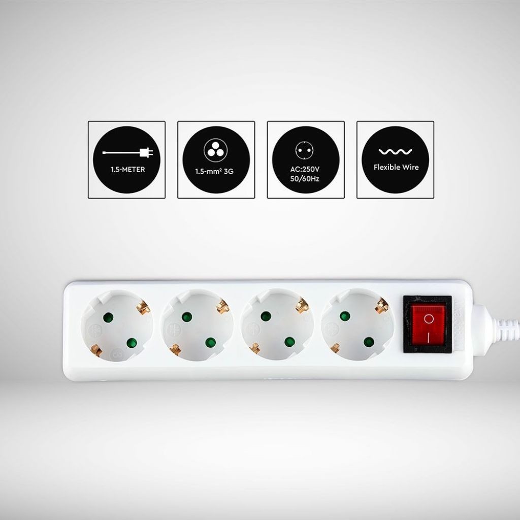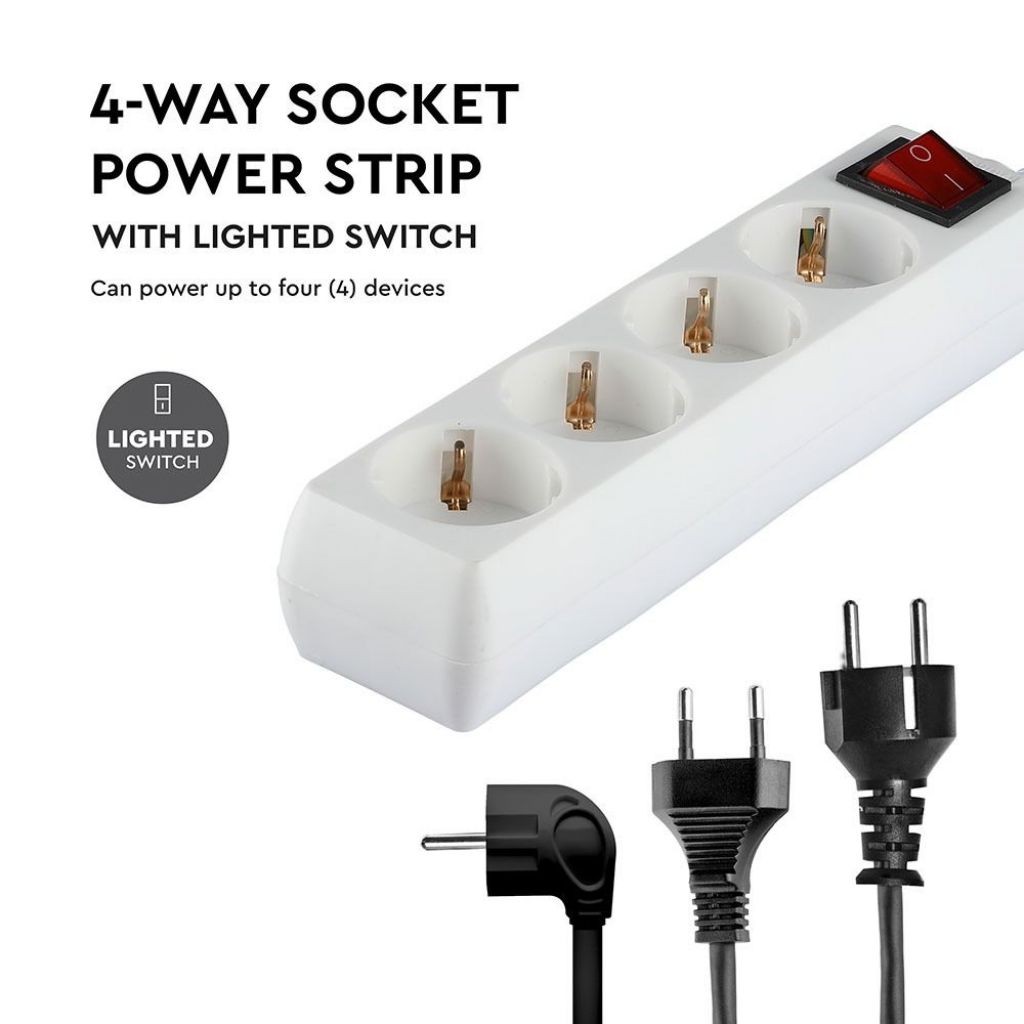 Recensioni V-TAC Multipresa con Cavo 1,5m 4 Prese 10A 2P + Schuko e Interruttore Luminoso Spina Schuko Colore Bianco