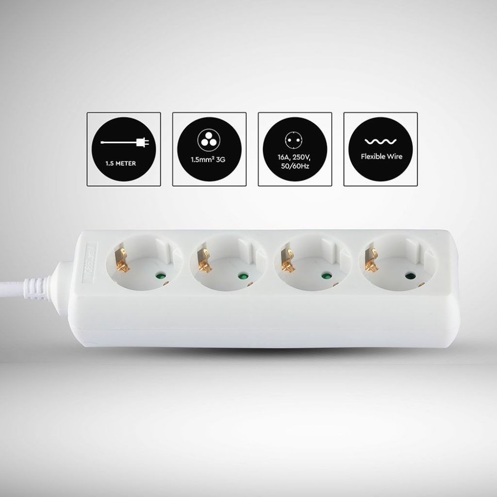 Recensioni V-TAC Multipresa con Cavo 1,5m 4 Prese 10A 2P + Schuko e Spina Schuko Colore Bianco