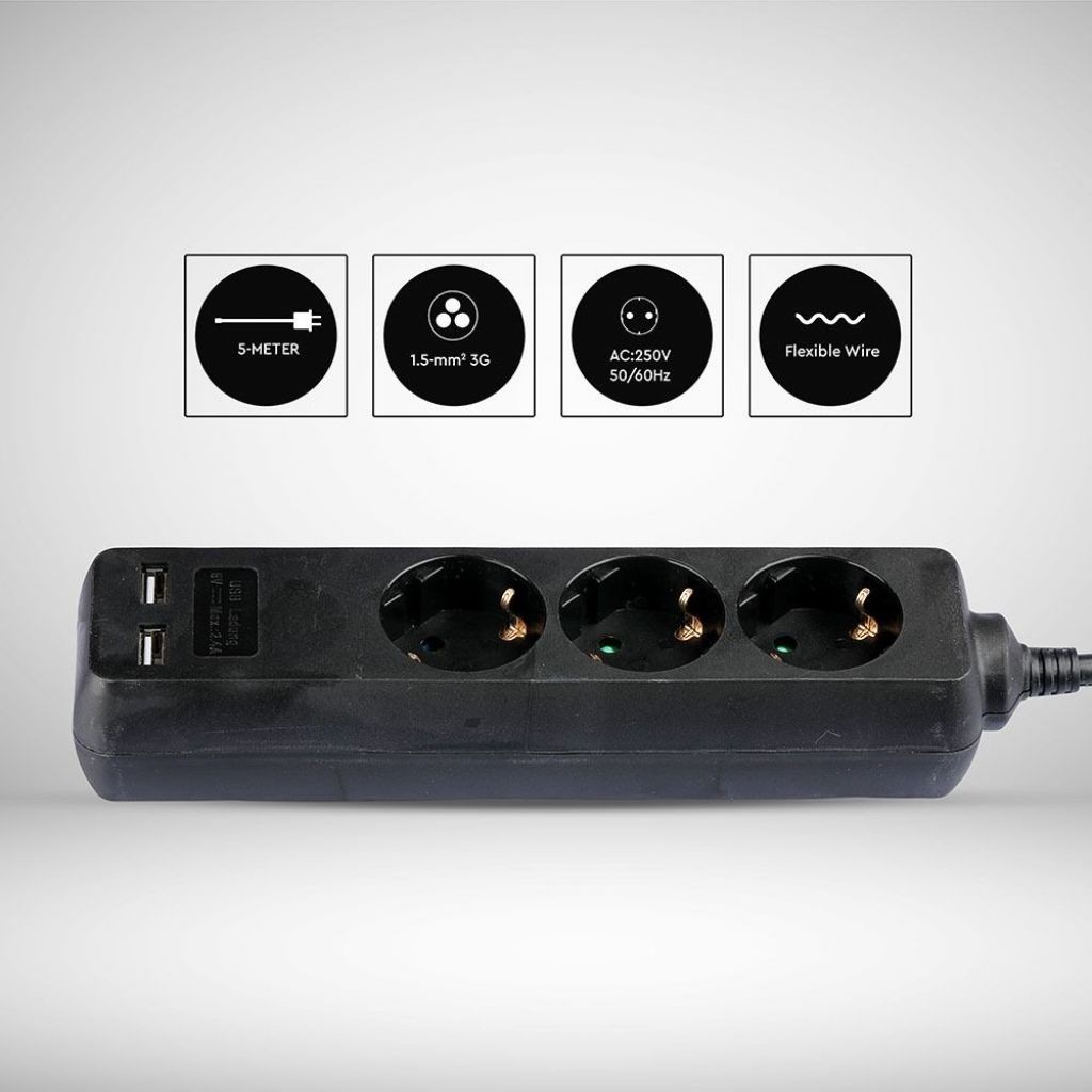 Recensioni V-TAC Multipresa con Cavo 5m 3 Prese 10A 2P + Schuko 2 USB e Interruttore Luminoso Spina Schuko Colore Nero