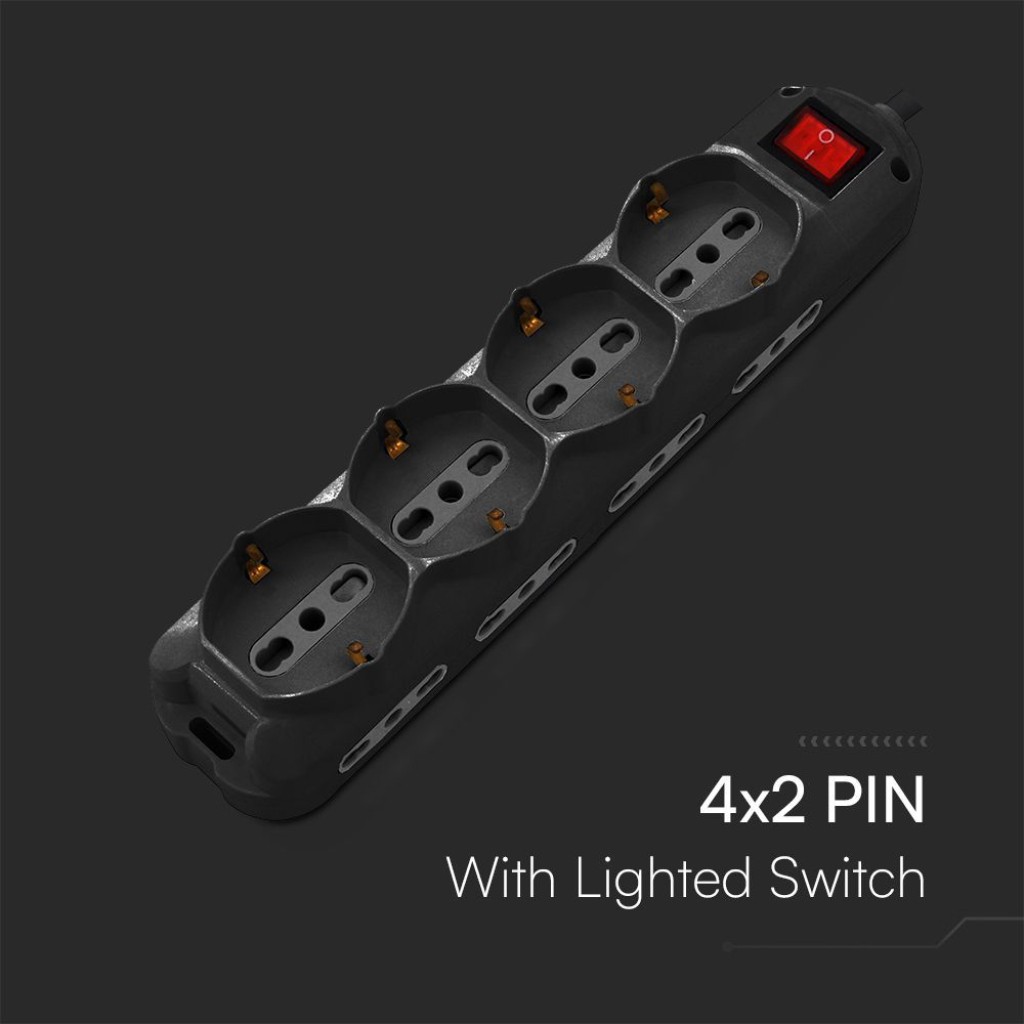Recensioni V-TAC Multipresa con Cavo 1,5m 8 Prese Laterali 10/16A 2P+T Bipasso 4 Frontali 10/16A 2P+T Bipasso Schuko con Interruttore Spina 16A 2P+T Colore Nero
