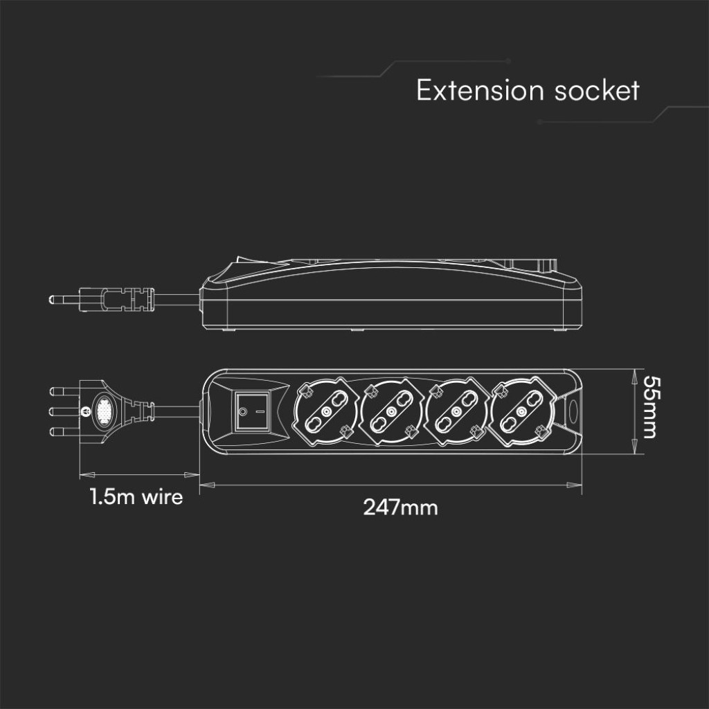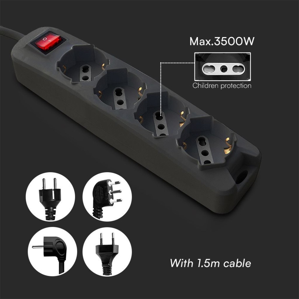 Recensioni V-TAC Multipresa con 4 Prese 10/16A 2P+T Bipasso/Schuko 45° e Interruttore Generale Luminoso e Cavo 1,5m Spina 16A 2P+T Colore Nero