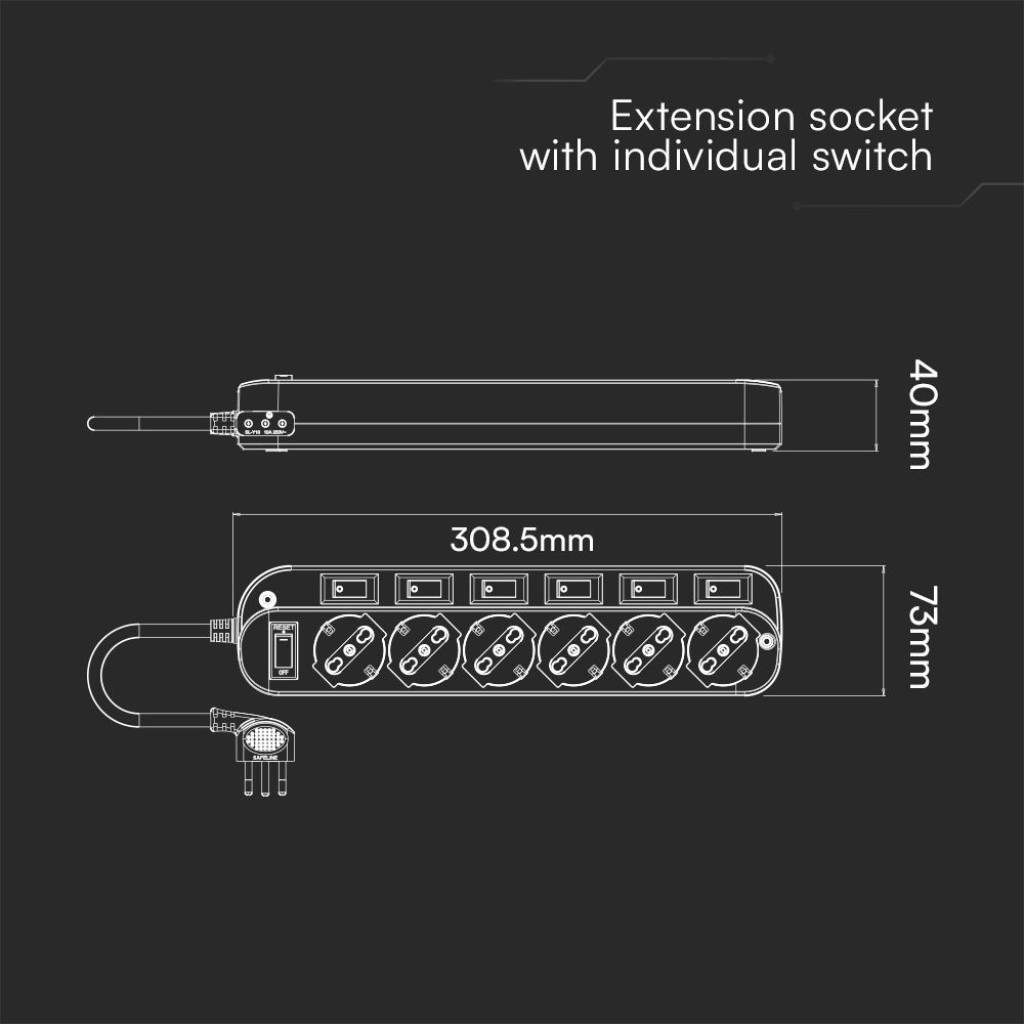 Recensioni V-TAC Multipresa con 6 Prese 10/16A 2P+T Bipasso/Schuko 45° e 6 Interruttori Indipendenti e Protezione Sovraccarico 3500W e Cavo 1,5m Spina 16A 2P+T Colore Nero