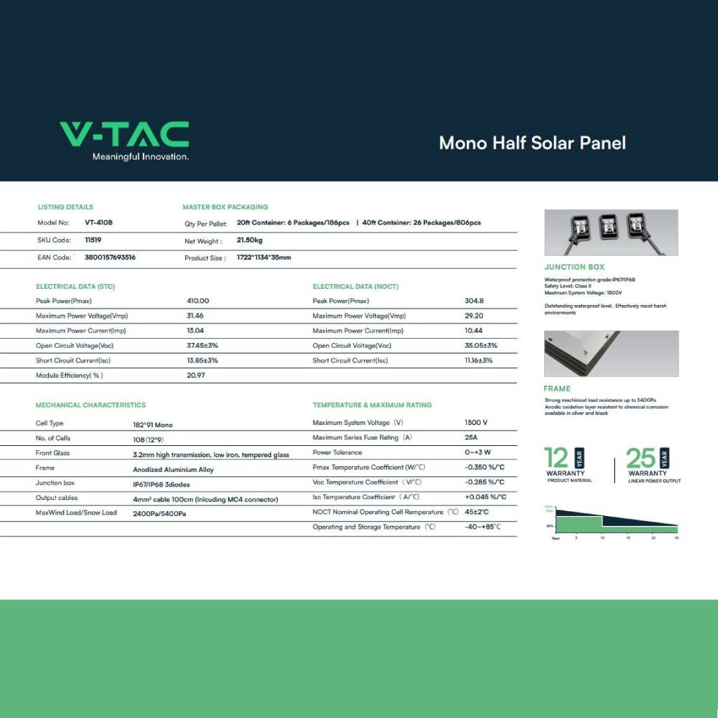 Recensioni V-TAC Pannello Solare Fotovoltaico Monocristallino Modulo 410W 1722*1134*35mm Cornice Nera (Full Black)