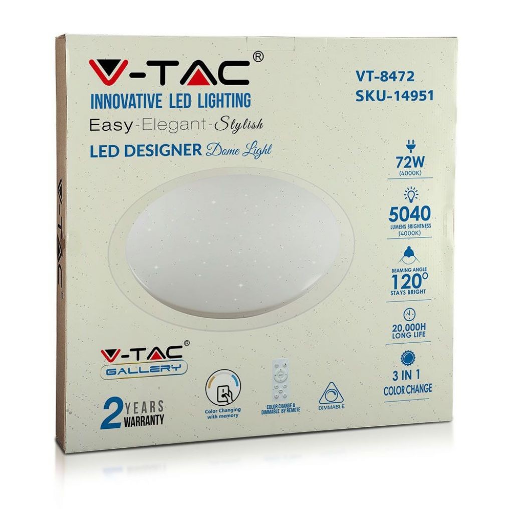 Recensioni V-TAC Plafoniera LED Rotonda 72W con Telecomando Cambia Colore 3 in 1 Effetto Stellato d: 670mm h: 75mm Dimmerabile