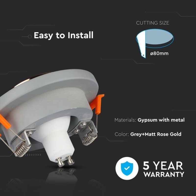 Recensioni V-TAC Portafaretto LED da Incasso GU10 Corpo in Gesso Rotondo Colore Grigio con Finitura Oro Rosa