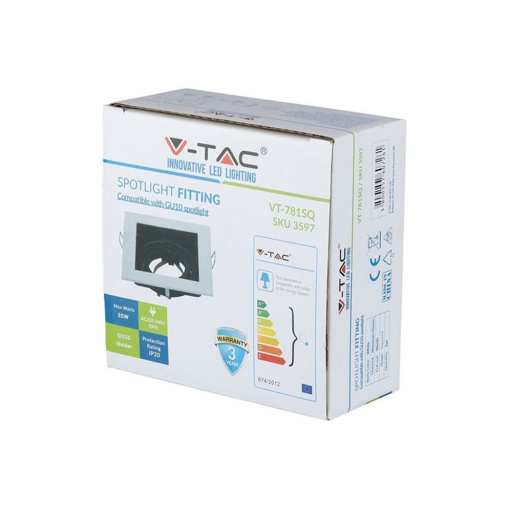 Recensioni V-TAC Portafaretto LED da Incasso Quadrato GU10 e GU5.3 (MR16) Colore Bianco Orientabile