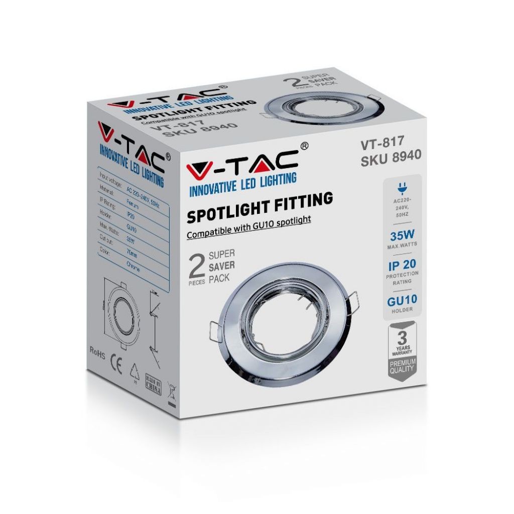 Recensioni V-TAC Portafaretto LED da Incasso Rotondo GU10 Colore Cromato (Box 2 Pezzi)