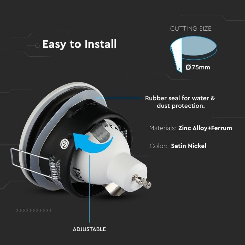 Recensioni V-TAC Portafaretto LED da Incasso Rotondo GU10 e GU5.3 (MR16) Colore Grigio Satinato IP54