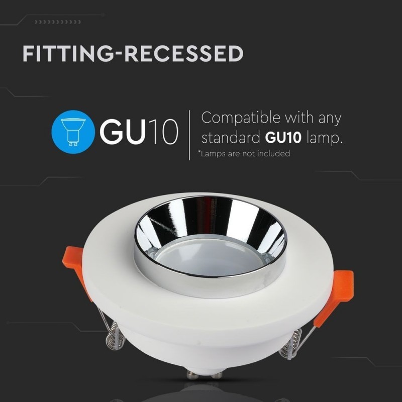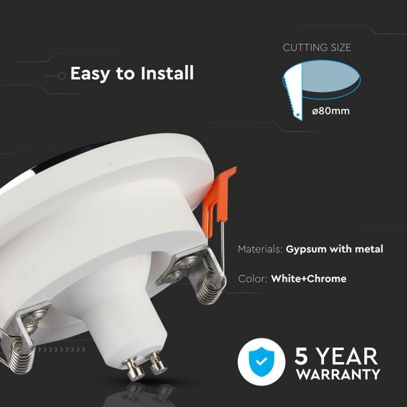 Recensioni V-TAC Portafaretto LED da Incasso Rotondo GU10 e GU5.3 (MR16) Corpo in Gesso Bianco e Metallo Cromato