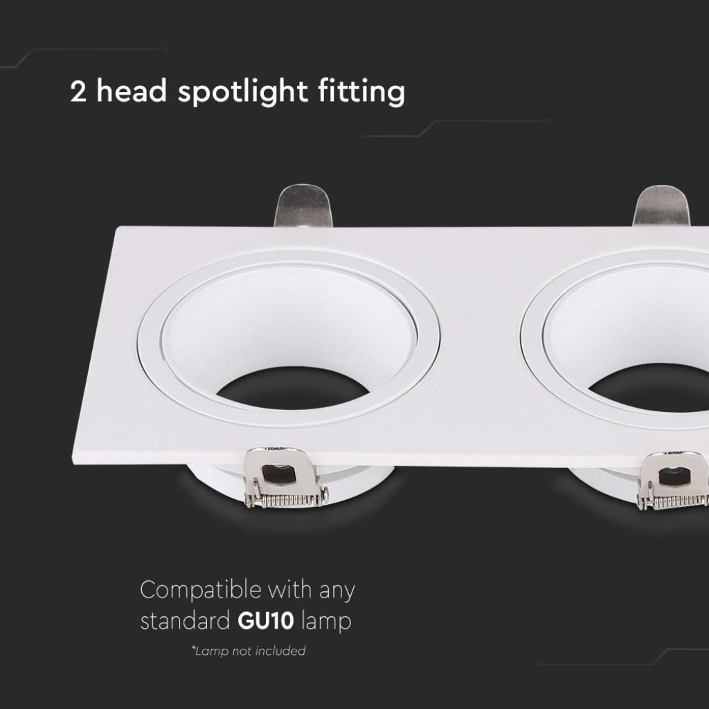 Recensioni V-TAC Portafaretto LED Doppio da Incasso Rettangolare 2*GU10 in Policarbonato e Ferro Colore Bianco