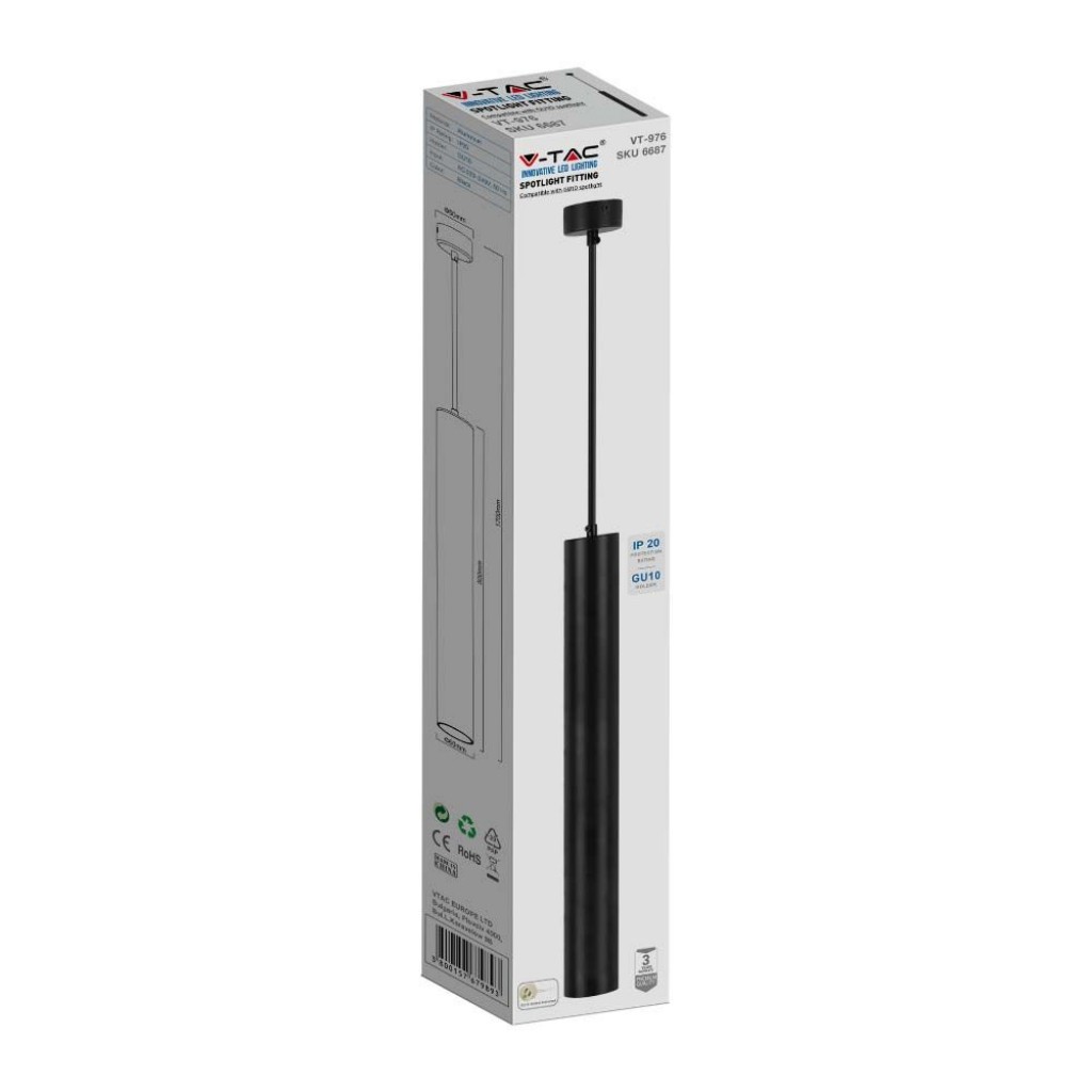 Recensioni V-TAC Portafaretto LED a Sospensione GU10 Corpo in Alluminio Nero Riflettore Colore Oro D:60*500MM