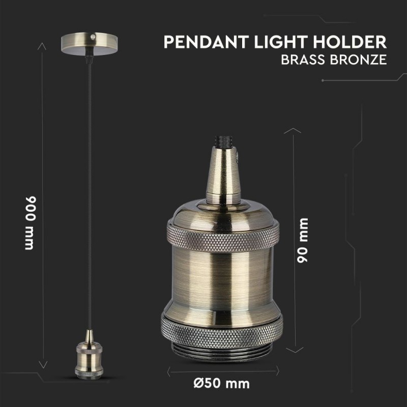 Recensioni V-TAC Portalampada a Sospensione E27 (Max 60W) Colore in Metallo Colore Bronzo Ottone
