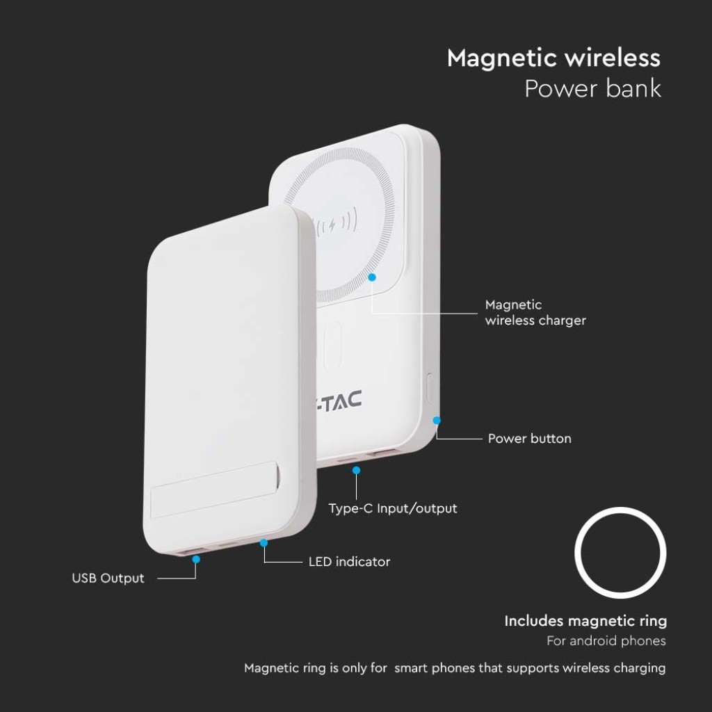 Recensioni V-TAC Power Bank 10000 mAh MagSafe Ultra Sottile Magnetico con Ricarica Wireless Colore Bianco