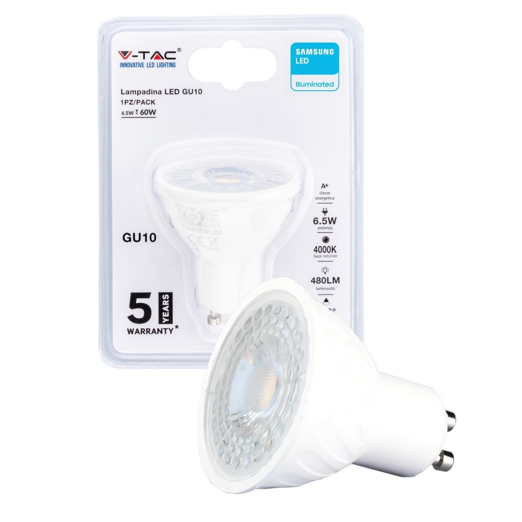 Recensioni V-TAC PRO Faretto LED Chip Samsung GU10 6,5W 4000K (Blister 1 Pezzo)