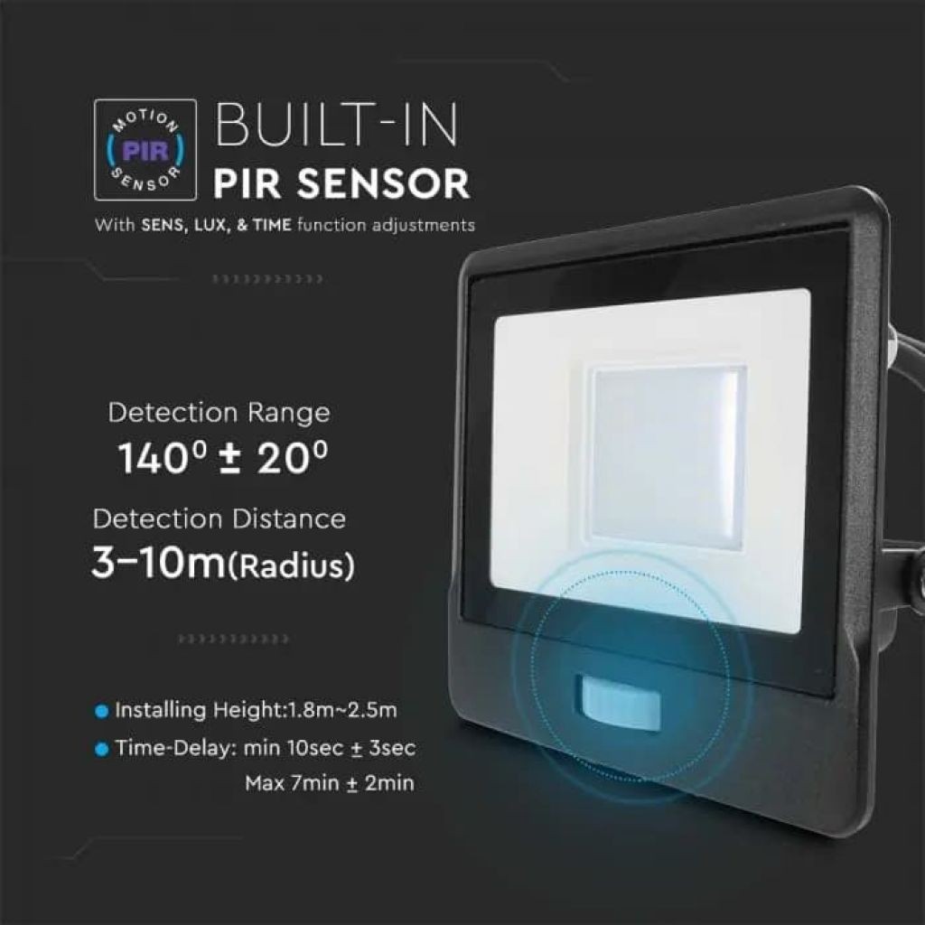 Recensioni V-TAC PRO Faro LED Chip Samsung 30W con Sensore PIR Cavo 1m Colore Nero 6500K IP65