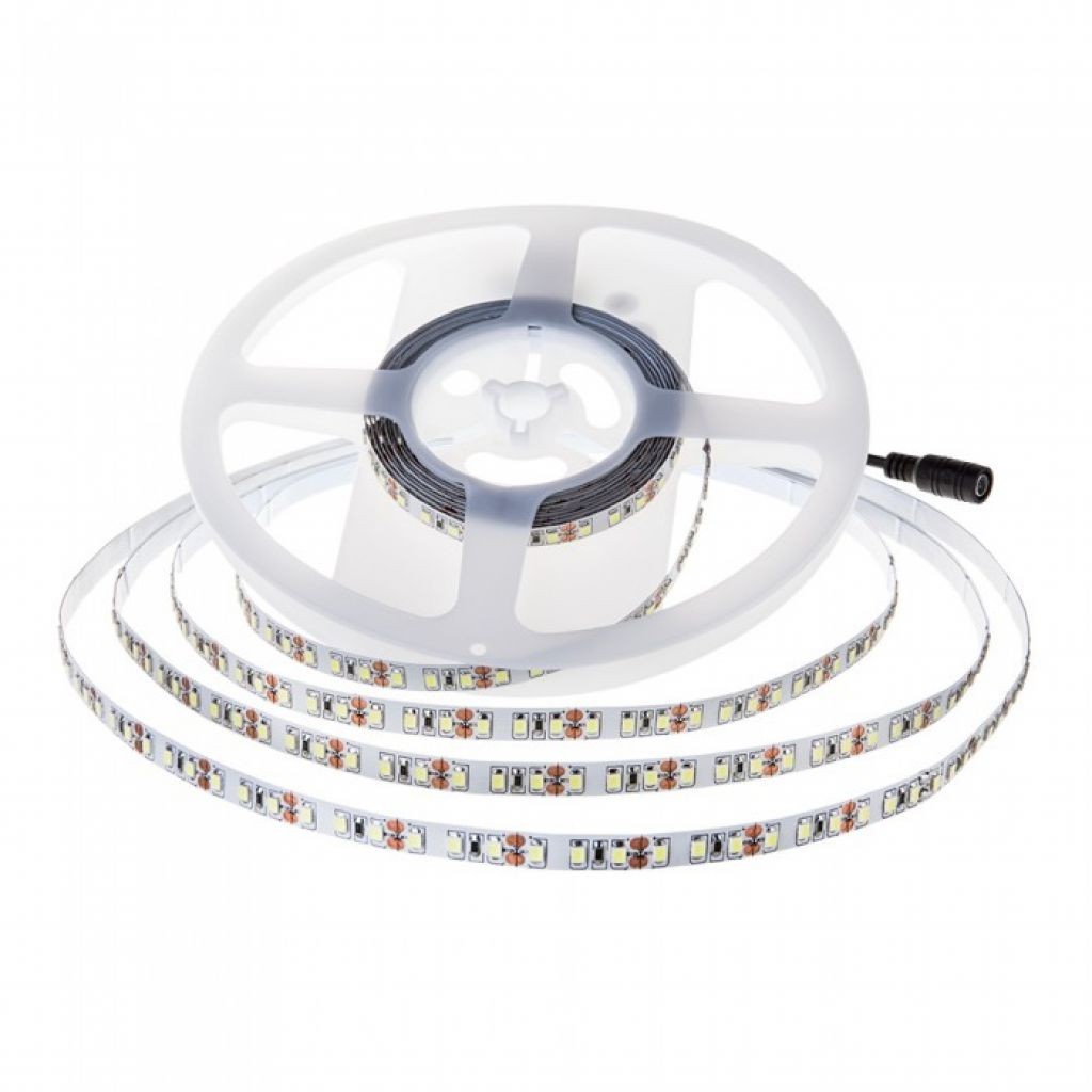 Striscia LED potenza PRO VT-5-120 con LED 2835 La striscia misura 5 metri ed è composta da 120 LED per metro Il fascio luminoso è di 120° mentre il flusso luminoso è di circa 10 lm per LED Il nuovo design slim rende il prodotto più leggero e più semplice da installare, oltre ad avere un'estetica più accattivante dei normali fari. LED ha una potenza di 12W al metro ed un rapporto di 100**lm/W* La striscia con grado di protezione IP20 non è impermeabile 1 può essere facilmente connessa ad un alimentatore plug&play Divisibile ogni 25 mm e dotata di striscia adesiva sul retro