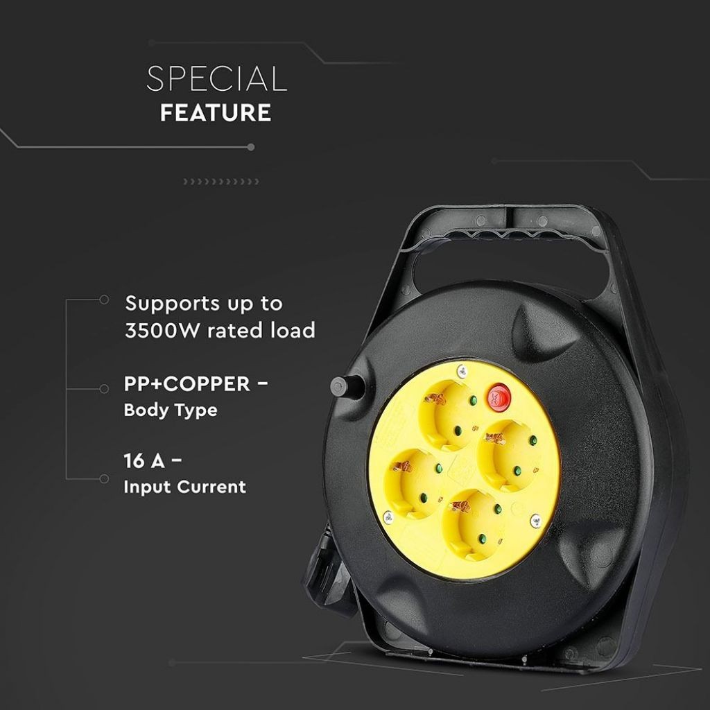 Recensioni V-TAC Prolunga Avvolgicavo con 4 prese 10A 2P + Schuko con Protezione Termica Colore Nero e Spina Schuko l: 10mt