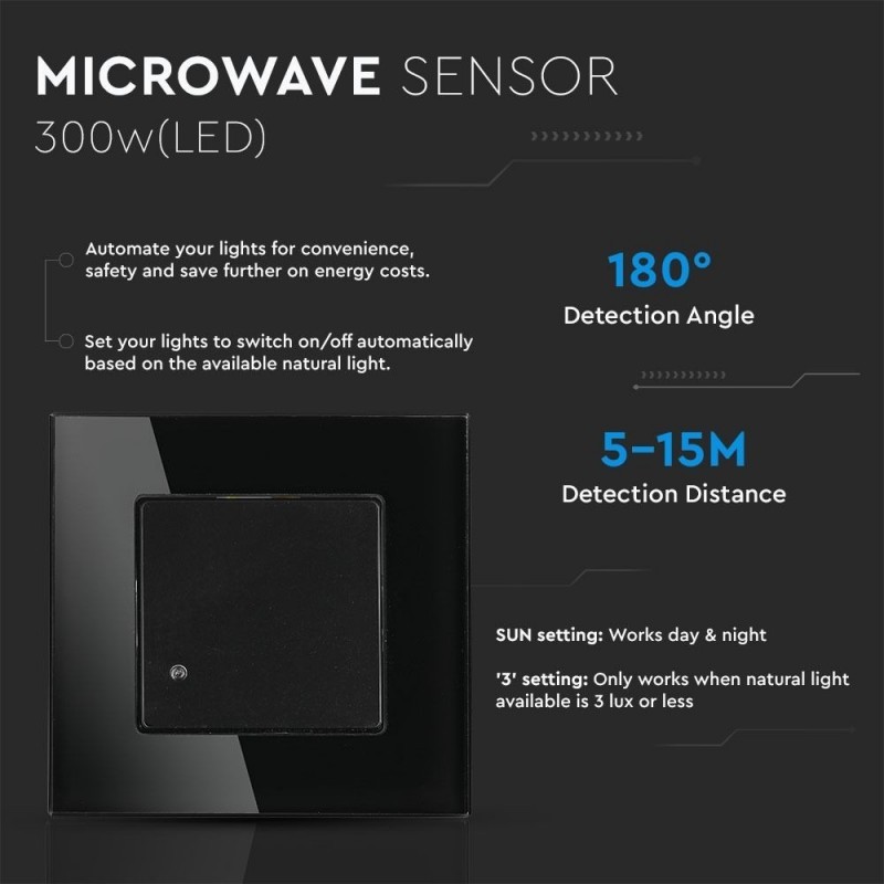 V-TAC Sensore a Microonde Colore Nero