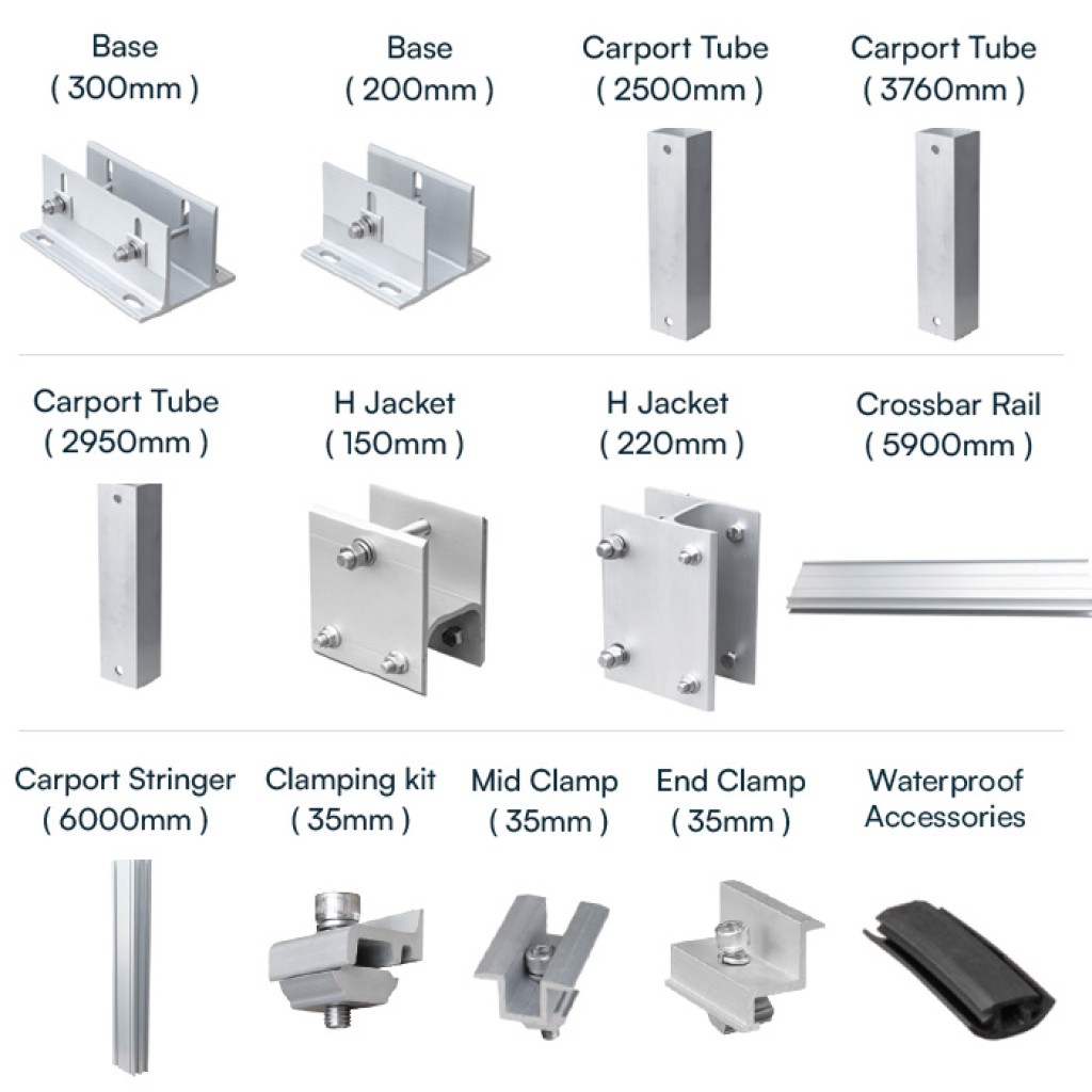 V-TAC SKU 22008 è una struttura in alluminio adatta per la realizzazione di un carport fotovoltaico (o pensilina fotovoltaica) per ospitare fino a due veicoli.