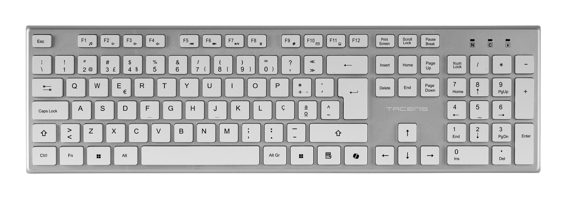 Tacens 6ZENITHWPT, Wireless, RF Wireless, Interruttore a chiave a membrana, QWERTY, Argento, Bianco, Mouse incluso