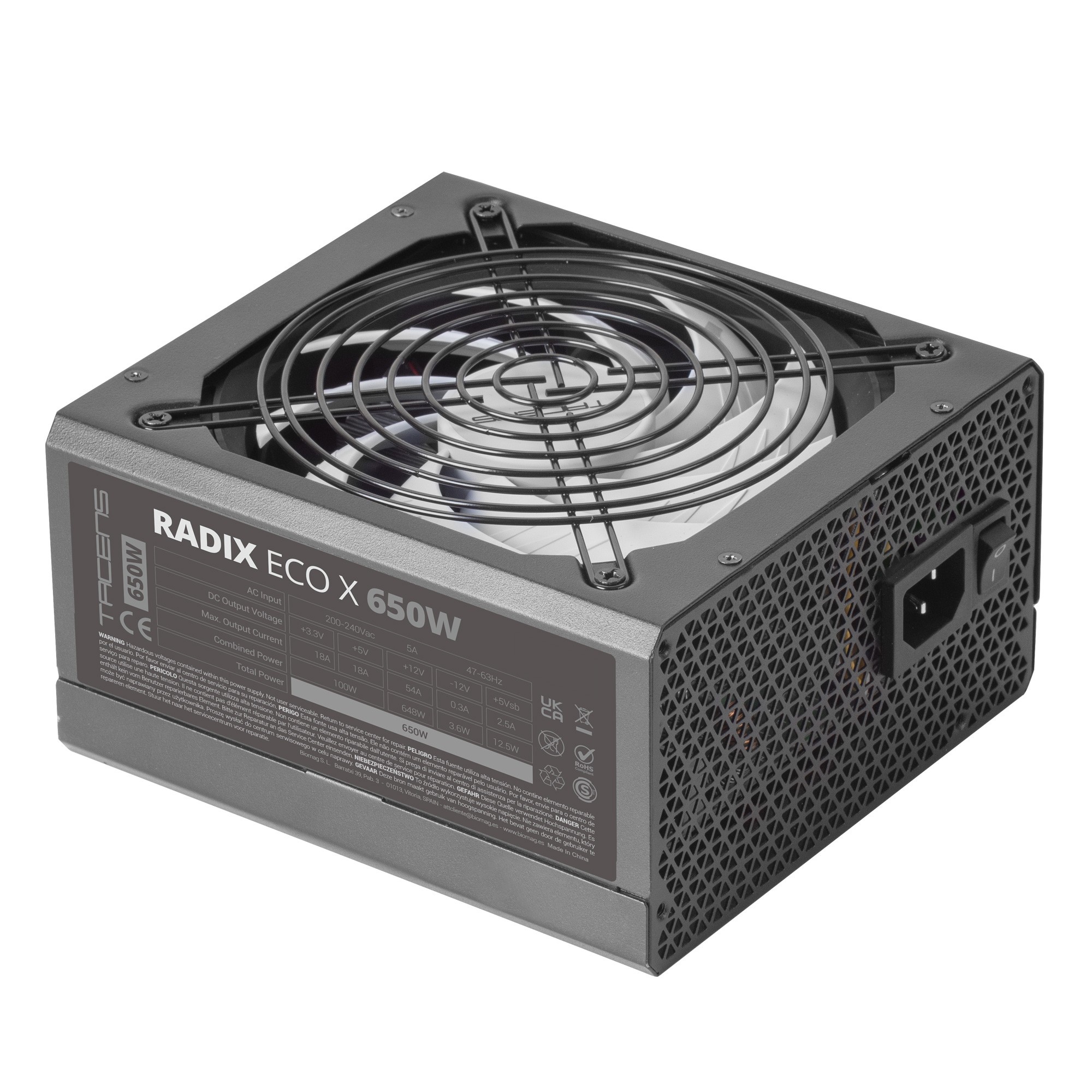 Tacens RADIX ECO X 650, 650 W, 200 - 240 V, 50 - 60 Hz, Attivo, 87%, Sovracorrente, Sovralimentazione, Sovraccarico, Cortocircuito, Sotto carico