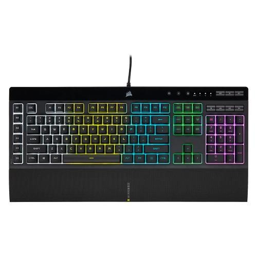 La tastiera da gioco CORSAIR K55 RGB PRO illumina la tua scrivania con una retroilluminazione RGB dinamica a cinque zone e potenzia il tuo gioco con sei tasti macro dedicati.