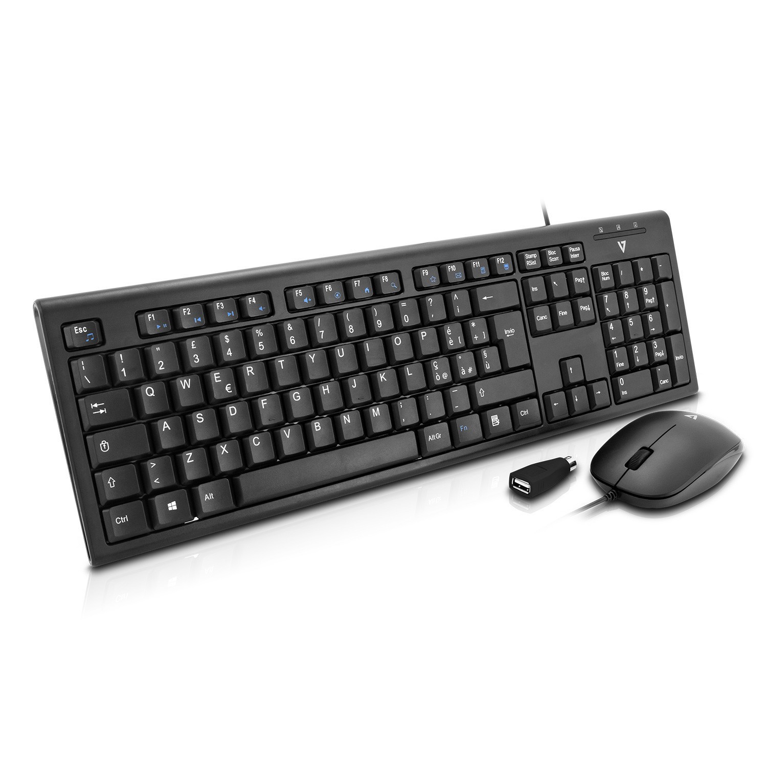 V7 Tastiera cablata USB e mouse combinato, Cablato, USB, Interruttore a chiave meccanica, QWERTY, Nero, Mouse incluso