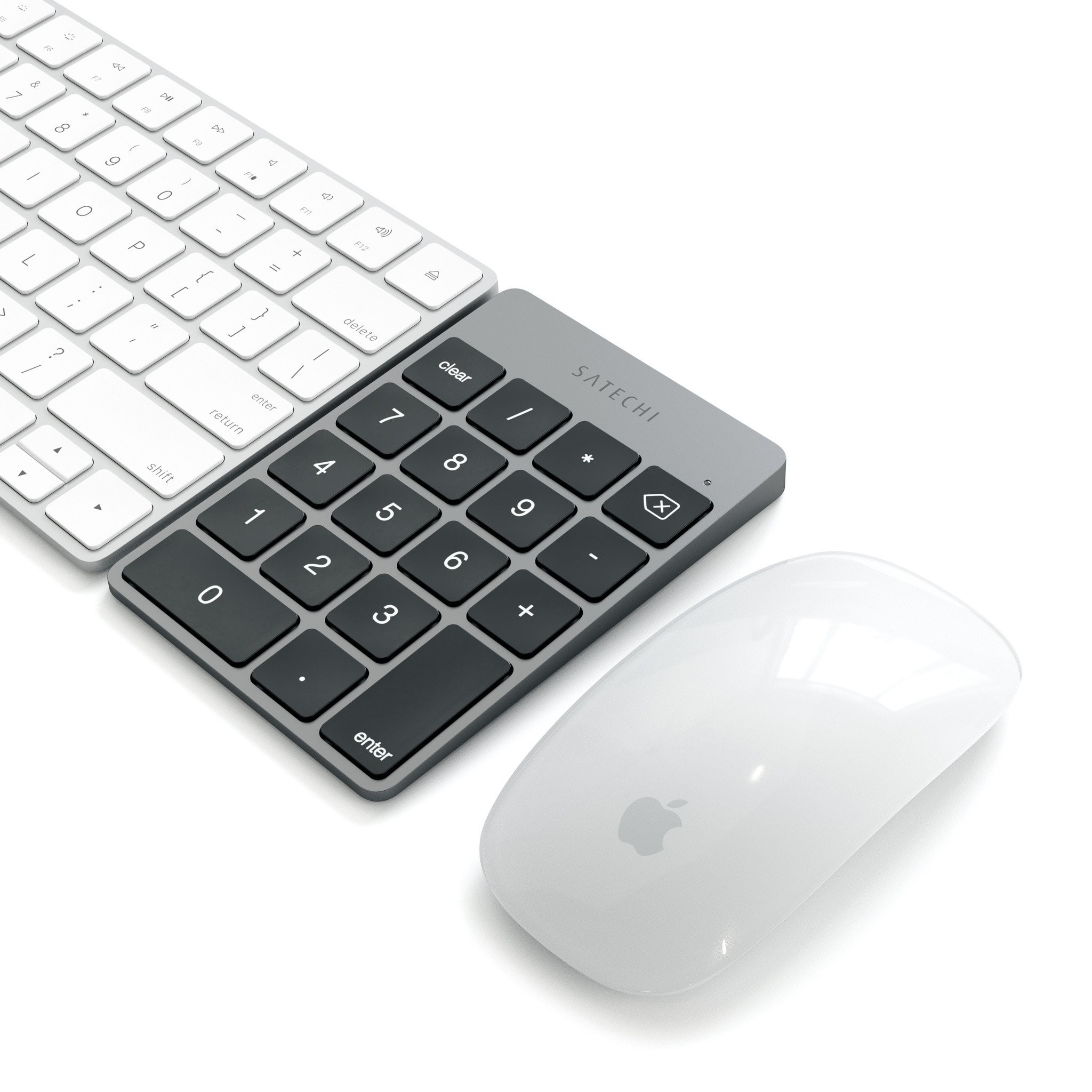 Satechi ST-SALKPM. Interfaccia dispositivo: Bluetooth, Numero pulsanti tastiera: 18, Utilizzo: Laptop/PC. Colore del prodotto: Grigio. Peso: 99,2 g
