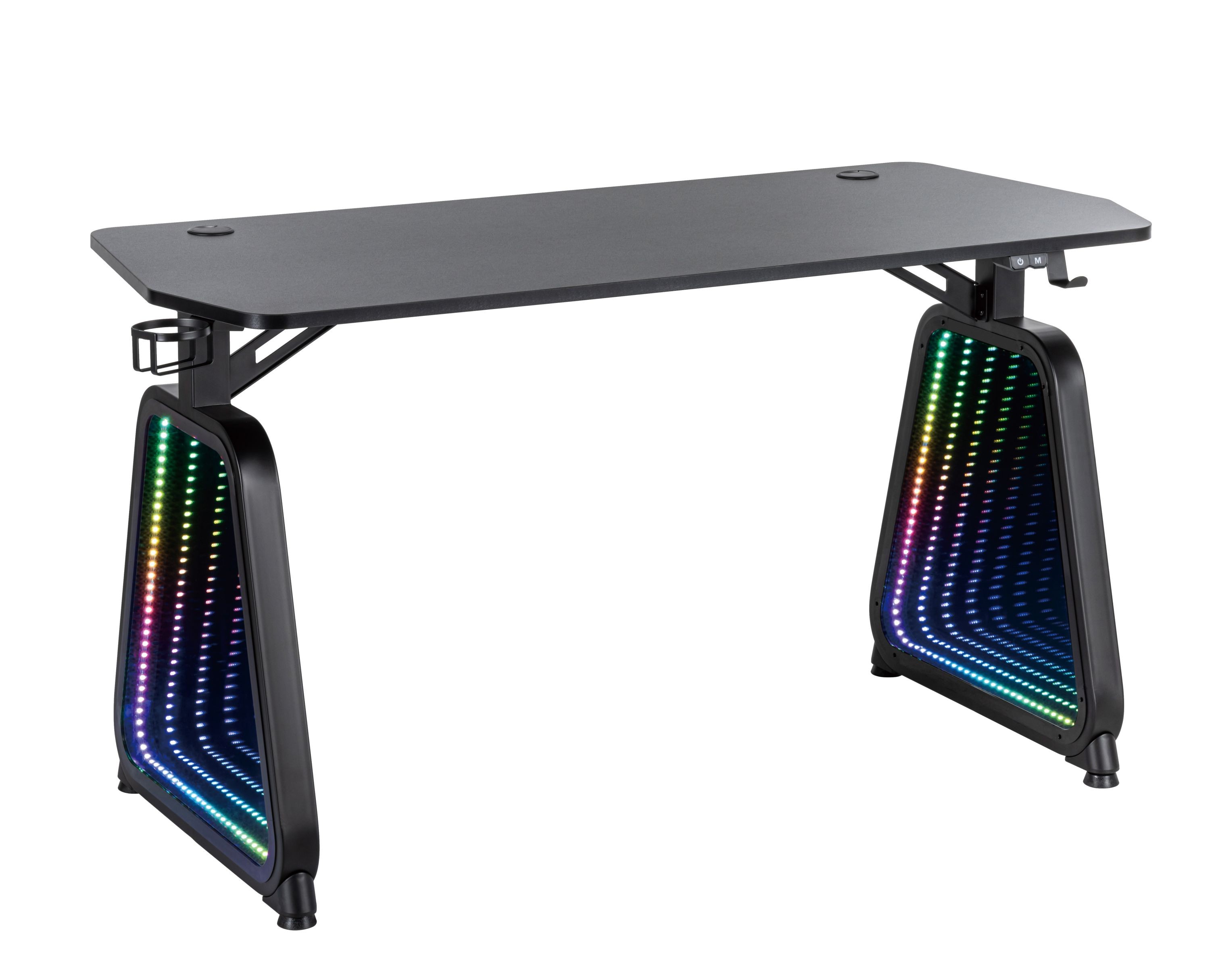 Tavolo gaming Infinity Mirror 3DSpettacolare tavolo di nuova concezione con gambe con immagine Mirror Infinity 3D con vari effetti selezionabili dall'utente.
