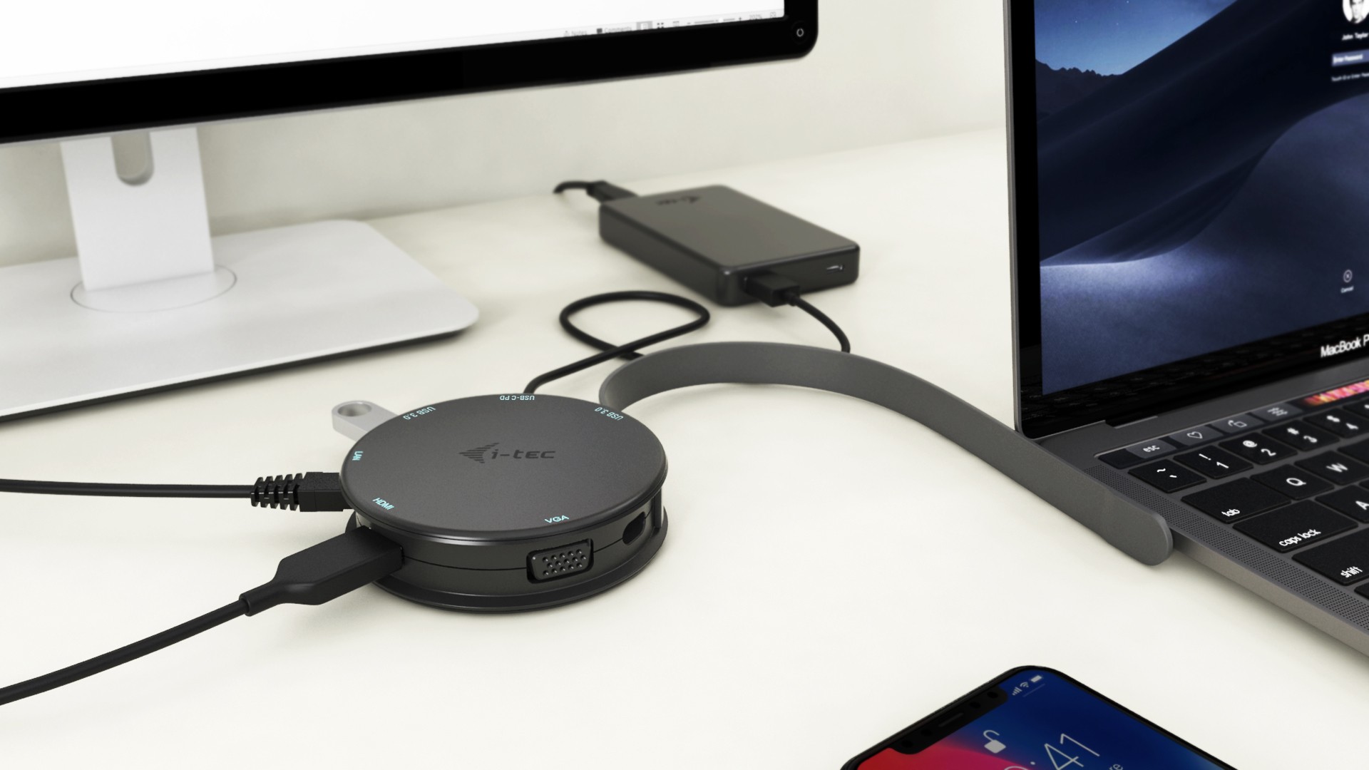 USB C Docking Station portatile è stata progettata per essere utilizzata molto spesso durante i viaggi. E’ compatta, robusta e ricca di funzioni. Qualora non desideraste utilizzare la Docking Station portatile, si può arrotolare il cavo intorno alla stessa e tutte le porte (anche i connettori USB-C) saranno ben protette. La Docking Station portatile si può collegare ai display moderni con il connettore HDMI (con una risoluzione fino a 4K), ma anche ai monitor della generazione precedente od anche ai proiettori dotati solo di interfaccia VGA. Stampante? Tastiera? Topo? Disco rigido esterno e USB-Stick? Caricabatterie per smartphone? Collega tutti i tuoi dispositivi rapidamente e facilmente alla docking station. Naturalmente c’è anche la possibilità di connettersi a Internet grazie alla connessione LAN, che elimina la diversa qualità e velocità delle reti Wi-Fi. Carica il tuo notebook o tablet, mentre lavori, tramite la porta USB-C o Thunderbolt 3. La Docking Station consente di caricare fino a 85 Watt. Questa Docking Station portatile è stata progettata per essere utilizzata molto spesso durante i viaggi. E’ compatta, robusta e ricca di funzioni. La Docking Station portatile si può collegare ai display moderni con il connettore HDMI (con una risoluzione fino a 4K), ma anche ai monitor della generazione precedente od anche ai proiettori dotati solo di interfaccia VGA. L’utilizzo della Docking Station portatile è semplicissimo – è sufficiente collegarlo ad una porta USB-C. La compatibilità con la porta Thunderbolt 3 è garantita. Non è necessaria l’installazione di nessun driver. La Docking Station portatile consente di trasmettere dati e video, e supporta l’alimentazione del dispositivo collegato (fino a 85 W). Il connettore GLAN RJ-45 garantisce l’accesso semplice e facile ad Internet oppure alla rete aziendale e le porte USB Vi consentiranno di collegare altri dispositivi hardware ed accessori. Qualora non desideraste utilizzare la Docking Station portatile, si può arrotolare il cavo intorno alla stessa e tutte le porte (anche i connettori USB-C) saranno ben protette.