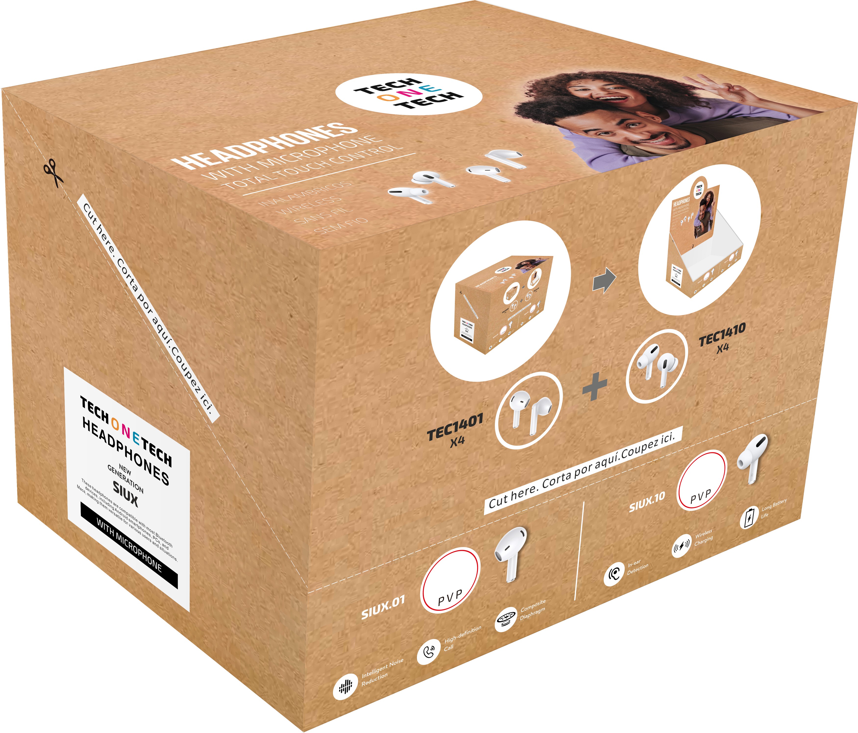 TECH ONE TECH TEC1420, Wireless, Musica e Chiamate, 636 g, Auricolare, Bianco