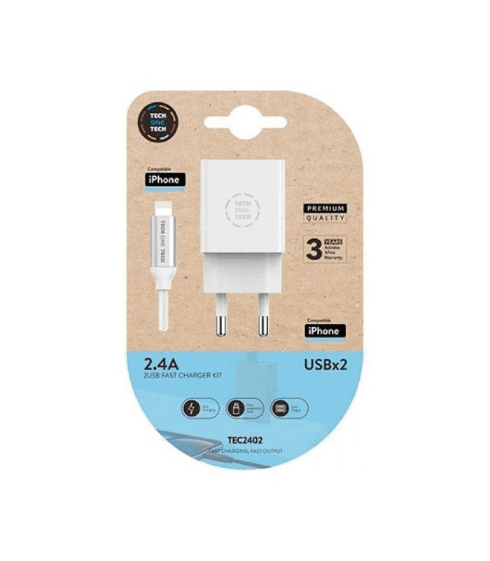TechOneTech Caricatore da rete + Cavo da USB-A a Lightning 1m - Rivestito in Nylon Intrecciato