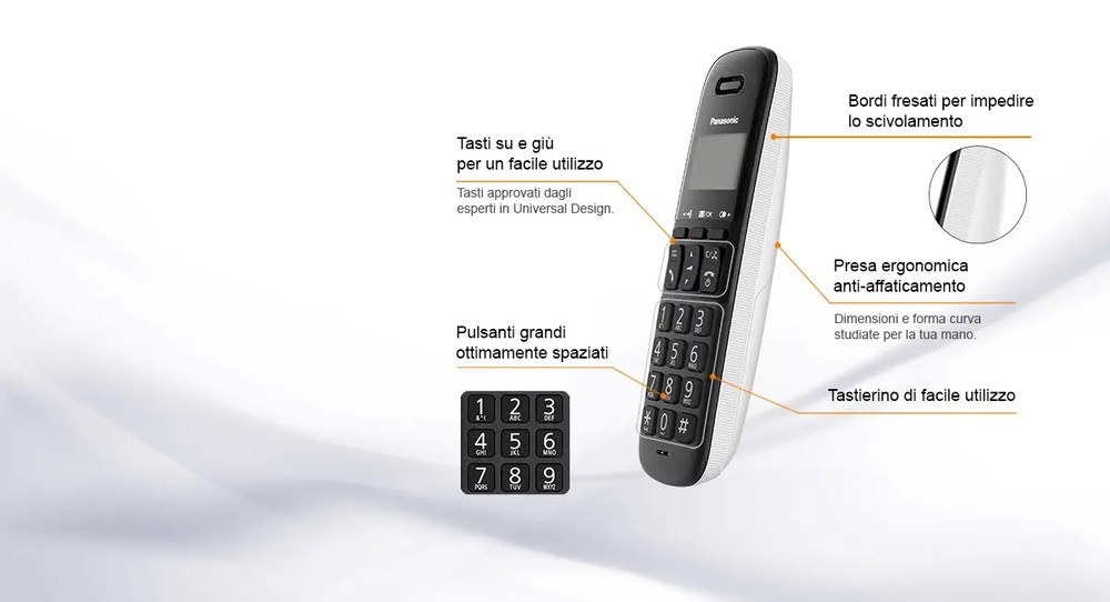 Suono nitido e audio ben udibile anche in presenza di rumori di fondo che potrebbero disturbare. Il volume massimo del ricevitore è quasi doppio rispetto ai telefoni DECT Panasonic standard come la serie KX-TG6811.