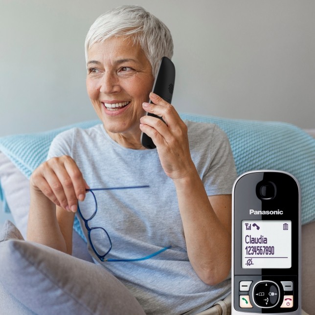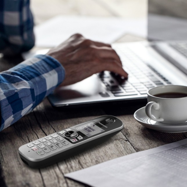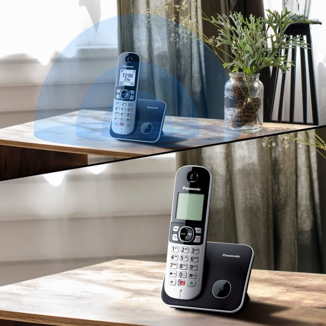 Panasonic Telefono cordless digitale KX-TG6851, Telefono DECT, Cornetta wireless, Telefono con vivavoce, 200 voci, Identificatore di chiamata, Nero, Grigio