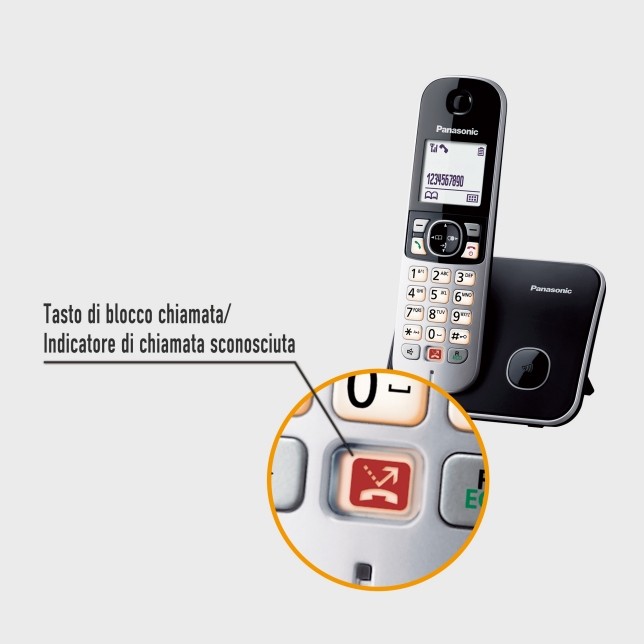 Il numero corrente può essere facilmente registrato nell'elenco blocco chiamate: basta premere il tasto per il blocco chiamate dedicato mentre il telefono squilla o durante una chiamata. È possibile bloccare fino a un massimo di 1.000 numeri registrati.