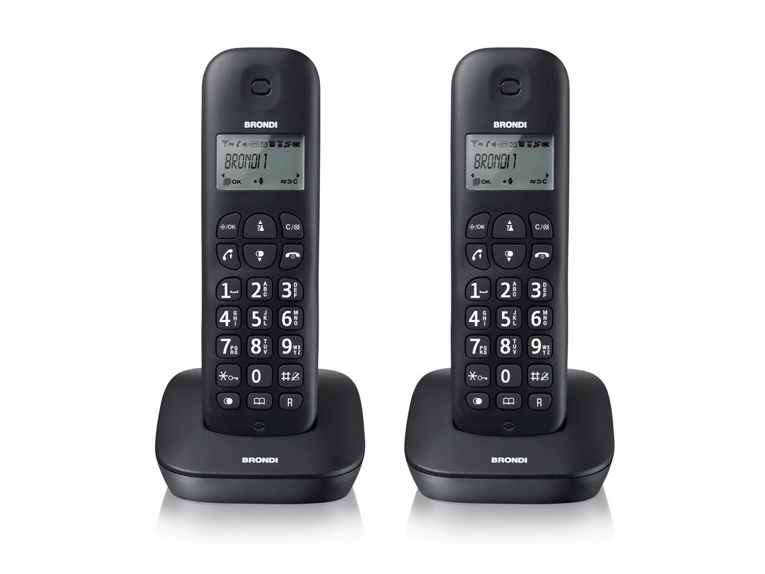 Brondi Gala Twin, Telefono DECT, Cornetta wireless, 20 voci, Identificatore di chiamata, Nero
