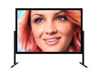 SPECIFICHE TECNICHE Schermo facilmente smontabile con cornice di alluminio sezione 70x20mm, verniciata a polveri epossidiche colore nero. Ancoraggio del telo alla cornice tramite elastici agganciati sul retro della struttura a perni scorrevoli per una perfetta planarità e la totale assenza di grinze. Ganci inclusi per eventuale ancoraggio a parete. Regolazione da terra tramite la coppia di montanti (opzionali). Possibilità di tagliare le cornici in più parti per agevolarne i trasporti