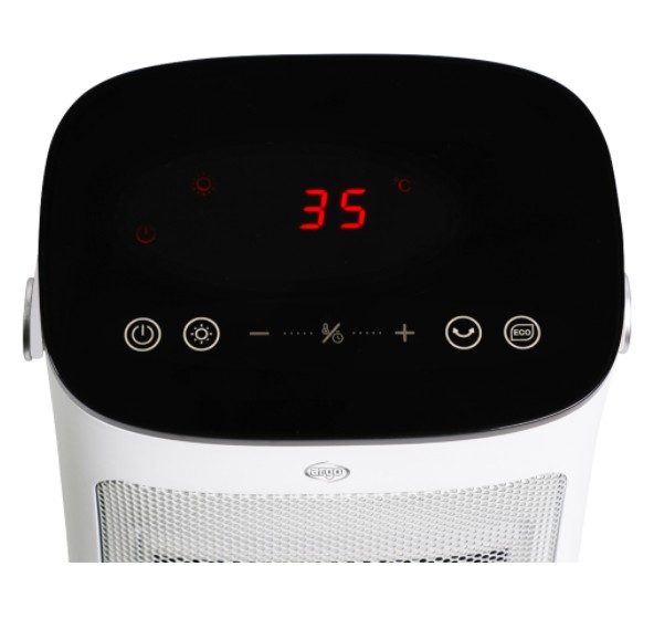 Argoclima Cloe. Tipo: Riscaldatore ambiente elettrico con ventilatore, Tipologia elemento riscaldante: Ceramica, Durata massima del timer: 12 h. Adatto per: Interno, Opzioni di posizionamento: Scrivania, Pavimento, Colore del prodotto: Bianco. Potenza termica: 2000 W, Potenza termica (min): 1300 W, Adatto per stanze fino a: 60 m³. Potenza: 2000 W, Tensione di ingresso AC: 220 - 240 V, Frequenza di ingresso AC: 50 Hz. Larghezza: 140 mm, Profondità: 193,4 mm, Altezza: 341 mm