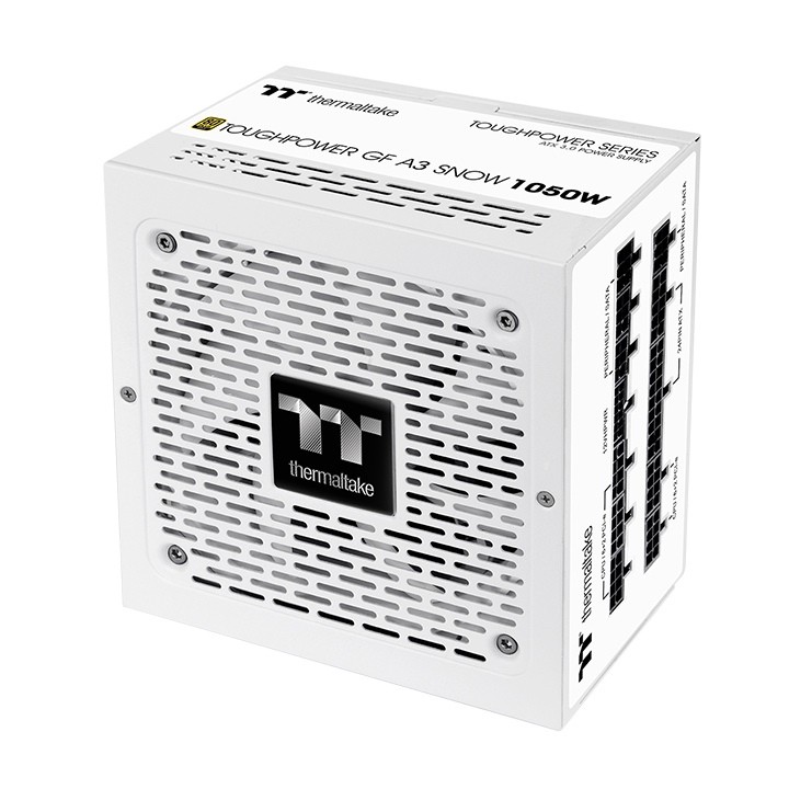 Thermaltake Toughpower GF A3 Snow 1050W - TT Premium Edition. Potenza totale: 1050 W, Tensione di ingresso AC: 100 - 240 V, Frequenza di ingresso AC: 50/60 Hz. Connettore scheda madre: 24-pin ATX, Lunghezza del cavo di alimentazione della scheda madre: 60 cm, Lunghezza del cavo di alimentazione SATA: 500,650,800,950 mm. Utilizzo: PC, Fattore di forma dell'unità di alimentazione (PSU): ATX, Certificazione 80 PLUS: 80 PLUS Gold. Colore del prodotto: Bianco, Tipo di raffreddamento: Attivo, Diametro del ventilatore: 12 cm. Larghezza: 150 mm, Profondità: 140 mm, Altezza: 86 mm