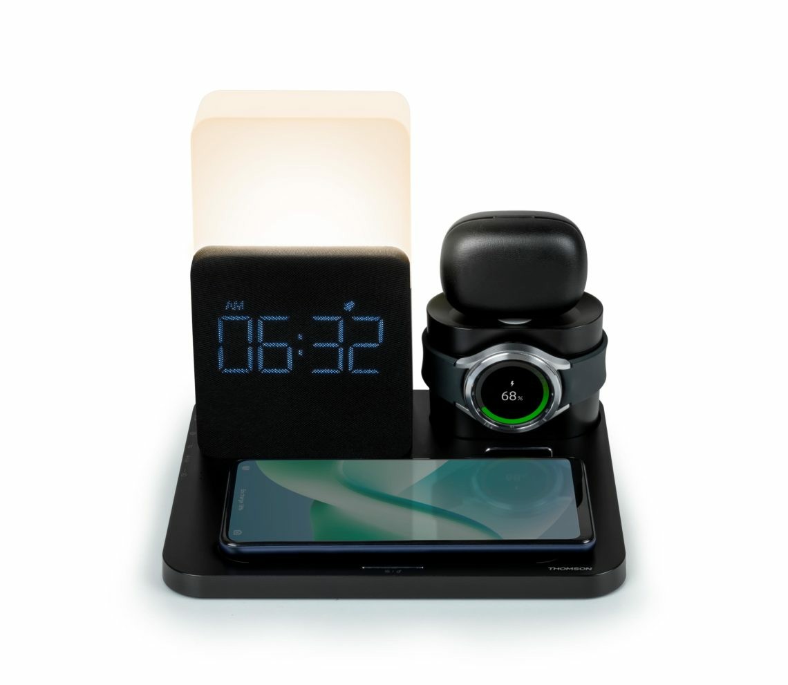 Thomson CL800i. Tipo: Sveglia digitale, Colore del prodotto: Nero, Formato ora: 12/24 ore. Larghezza: 200 mm, Altezza: 200 mm, Profondità: 235 mm. Quantità per pacco: 1 pz, Larghezza imballo: 175 mm, Profondità imballo: 200 mm
